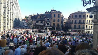 concentraron en la Plaza del Azoguejo , calles limítrofes y en las escaleras
